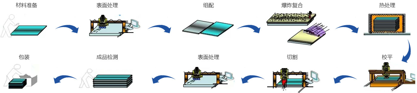 不銹鋼復合板爆炸復合的生產方法。 爆炸復合是將不銹鋼板重疊置于碳鋼基板上,不銹鋼板和碳鋼基板之間用墊子間隔出一定的距離,在不銹鋼板上面平鋪炸藥,炸藥爆炸的能量使不銹鋼板高速撞擊碳鋼基板,產生高溫高壓使兩種材料的界面實現固相結合。 不銹鋼復合板是以碳鋼基層與不銹鋼覆層結合而成的復合板鋼板。它的主要特點是碳鋼和不銹鋼形成牢固的冶金結合,可以進行熱壓、冷彎、切割、焊接等各種加工,有良好的工藝性能。不銹鋼復合板的基層材料可以使用Q235B、Q245R、Q345B,Q345R等各種普通碳素鋼和專用鋼。覆層材料可以使用304、316L、321和雙相不銹鋼等各種牌號的不銹鋼。材質和厚度可以自由組合,滿足不同用戶的需要。不銹鋼復合板已經廣泛應用于石油、化工、鹽業(yè)、水利電力等行業(yè)。不銹鋼復合板作為一種資源節(jié)約型的產品,減少貴重金屬的消耗,大幅度降低工程造價。實現低成本和高性能的***結合,有良好的社會效益?! 〔讳P鋼復合板是怎樣生產的呢?不銹鋼復合板工業(yè)化生產主要有兩種方法,爆炸復合和熱軋復合。爆炸復合板的生產工藝是將不銹鋼板重疊置于碳鋼基板上,不銹鋼板和碳鋼基板之間用墊子間隔出一定的距離。不銹鋼板上面平鋪炸藥,炸藥爆炸的能量,使不銹鋼板高速撞擊碳鋼基板,產生高溫高壓使兩種材料的界面實現固相焊接。理想狀態(tài)下,界面的每平方毫米的剪切強度可以達到400MPa以上。熱軋復合板工藝是以碳鋼基板和不銹鋼板處于物理純凈狀態(tài),在高度真空條件下進行軋制而成。在軋制過程中兩種金屬擴散實現完全的冶金結合。但是不能解決10mm以上金屬的復合,這種焊接只具有壓軋焊接的特點,不像爆炸焊接融合了壓力焊、熔化焊、和擴散焊的特點,爆炸焊為不同基體金屬的結合提供了更多和更好的條件。正因為如此,同種和異種金屬都可以爆炸焊接以上兩種復合板制造方法都執(zhí)行GB/T-8165-1977國家標準。該標準非等效采用日本JISG3601-1990標準,主要技術指標相同或高于日本標準。 那么爆炸復合工藝特點如何呢?爆炸復合的特點:一、由于爆炸復合是冷加工,因此它可以產生100多種金屬復合板,如鈦、銅、鋁等等。二、爆炸復合可以生產不銹鋼復合板總厚度可以達到幾百毫米厚的不銹鋼復合板,不銹鋼復合板兼具各種碳素鋼和不銹鋼的特點,以其優(yōu)異的性能價格比為用戶歡迎,有廣闊的市場前景。但有趣的是,從五十年代開始,經過半個多世紀風風雨雨的開發(fā)過程,仍然有很多人不知道它。更多的人未使用過它。應該說不銹鋼復合板的市場遠未進入成熟期,仍在開發(fā)過程中??萍脊ぷ髡邽榻ㄔO資源節(jié)約型社會的探索和努力永遠不會停止。洛陽京久金屬復合材料有限公司致力于各種金屬爆炸復合材料的研究與開發(fā)生產,永不停歇的努力滿足社會發(fā)展對金屬復合材料的需求。